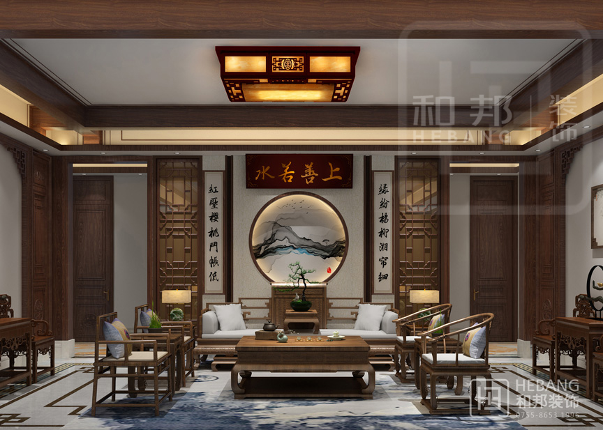 傳統(tǒng)的中式風格加上明快的現(xiàn)代風格,一個愉悅的空間、一種尊貴的生活、一方獨享的天地,都在這里尋求最合適的表達。